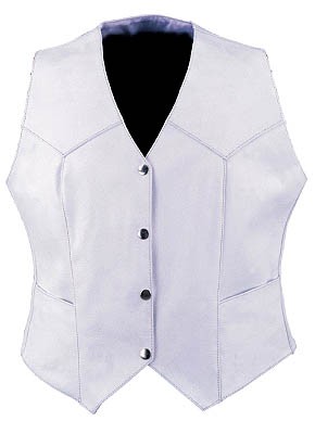 Women Leather Vest. Made of White Premier Leather.Four Black color Button On Front.Two Side Pocket.One Inside Pocket.All Size Available